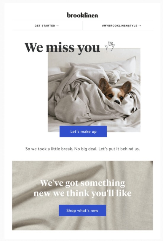 There are several different tactics that you can use as a sort of theme for your re-engagement message. The approach you choose should match your brand voice and overall vibe.